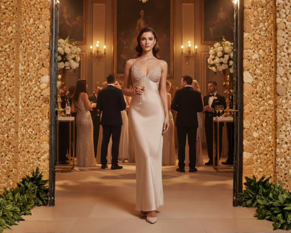 SAYD — Satin Floral Lace Slip Dress
