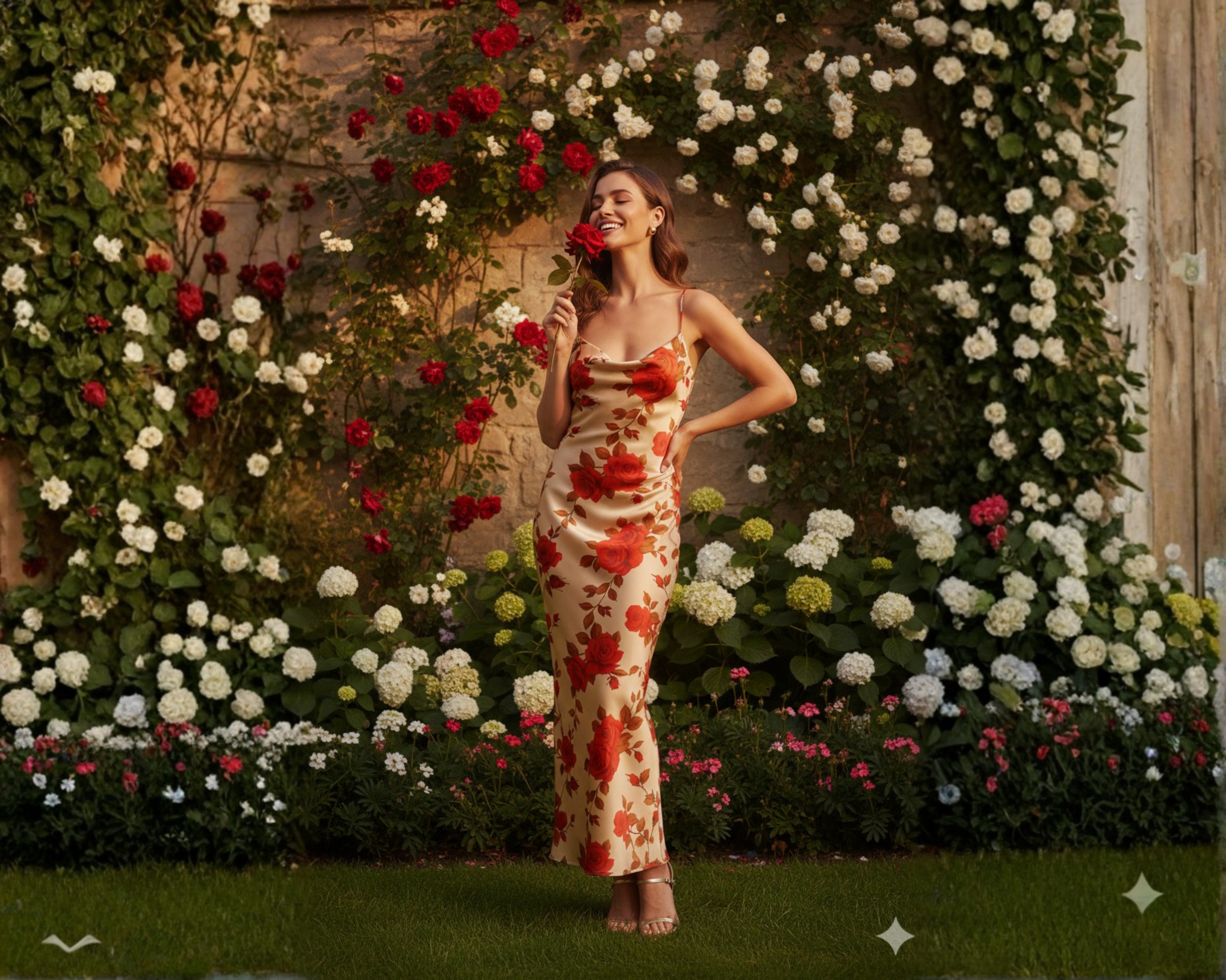 SAYD — Red Rose Print Bodycon Dress