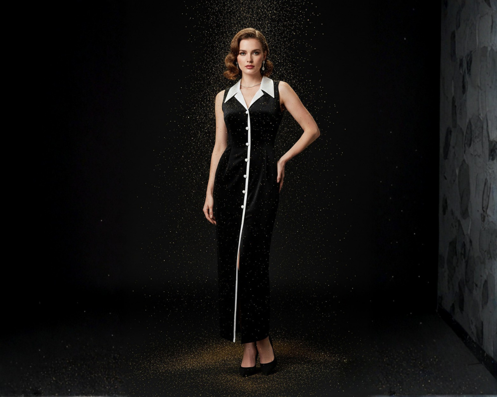 SAYD — Monochrome Button-Down Maxi Dress